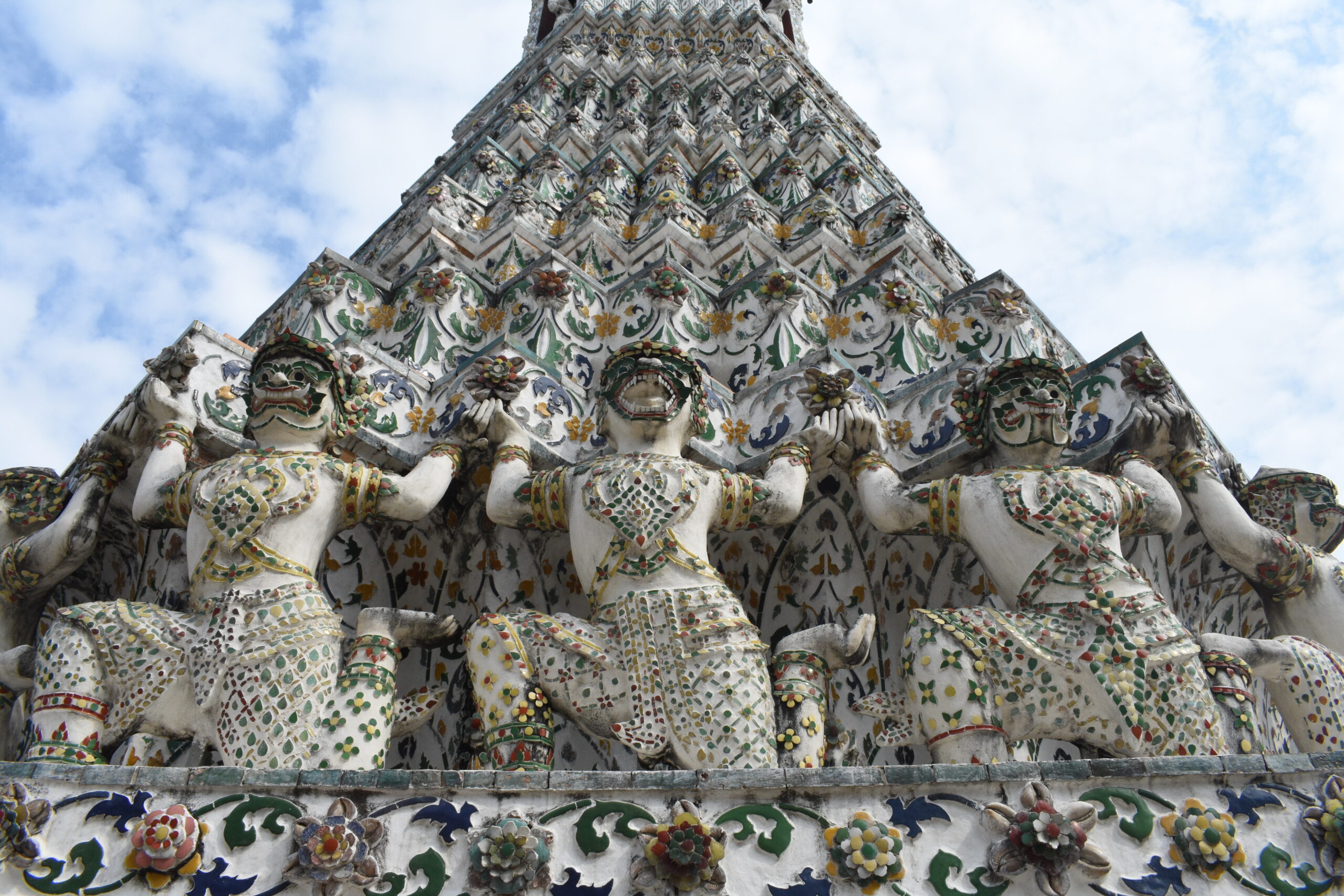 Hop on a shuttle boat after the Grand Palace and Wat Phra across the river to Wat Arun, another Buddhist temple. This temple is a centerpiece of the Bangkok skyline and architecture along the river. The complex has tall spirals and amazing decor. Lots of gold!