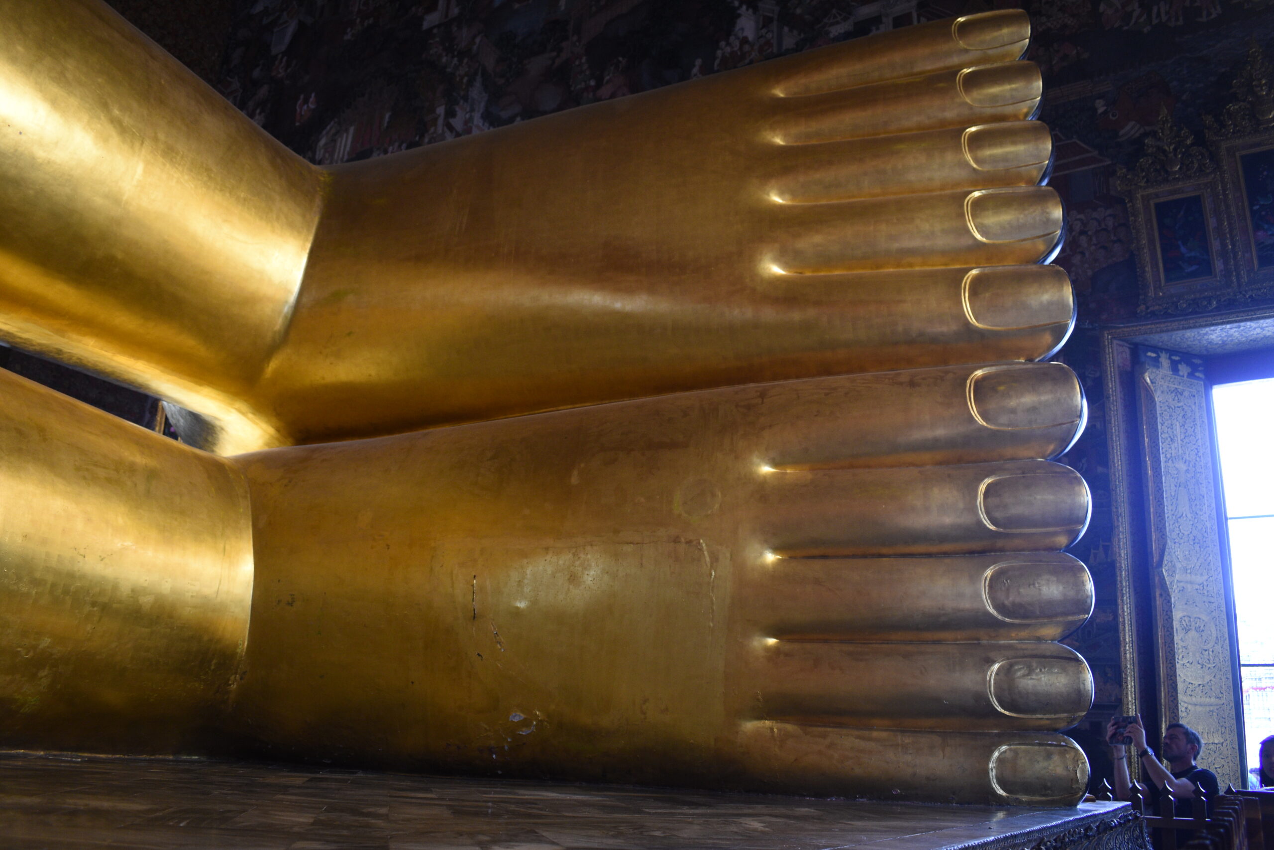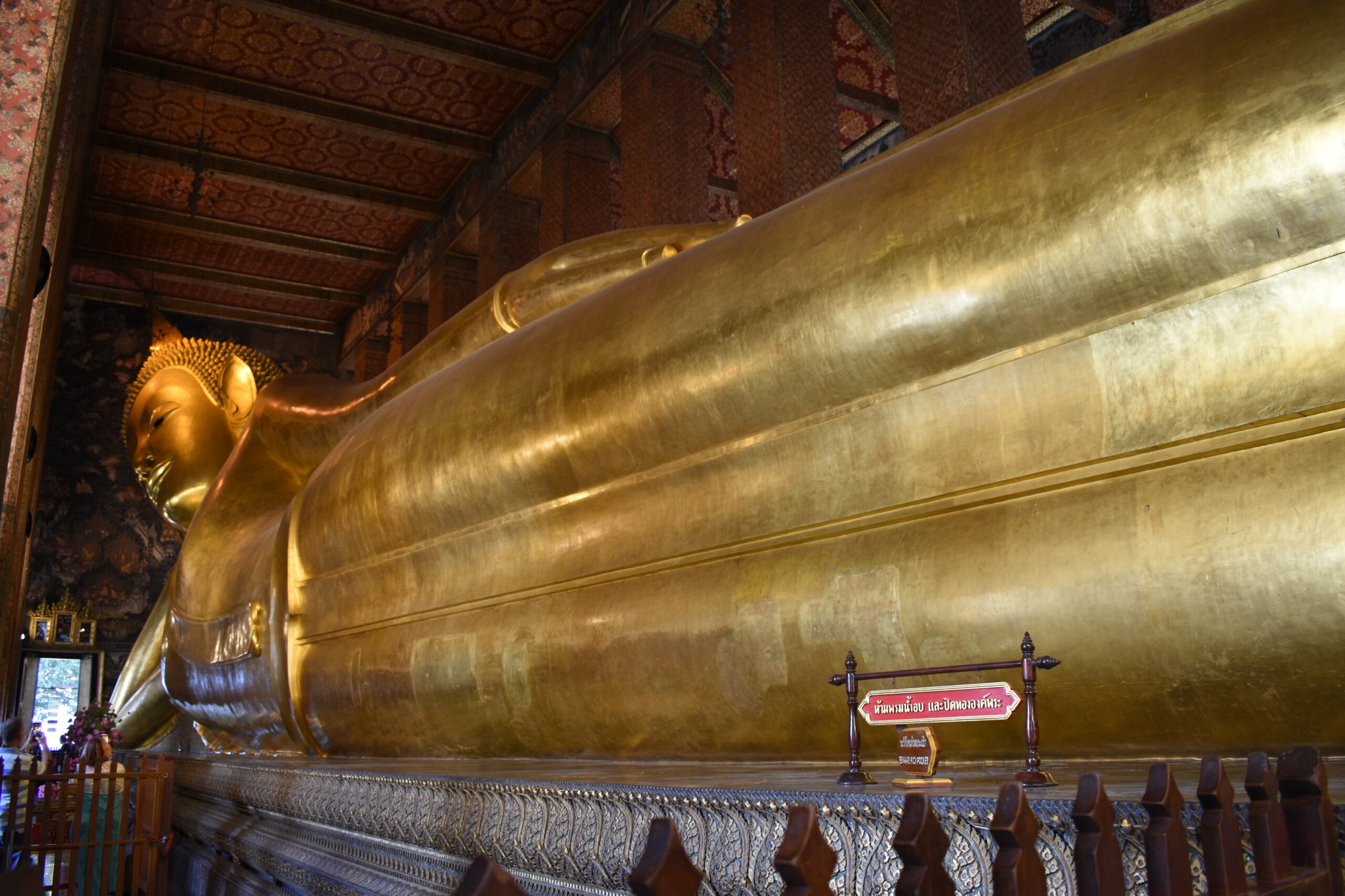Just south along the river from the Grand Palace is Wat Phra, also known as the Temple of the Reclining Buddha, a 150 foot long gold Buddha just chillin. This is another temple complex to wander in awe of the buildings, grandeur and gold.